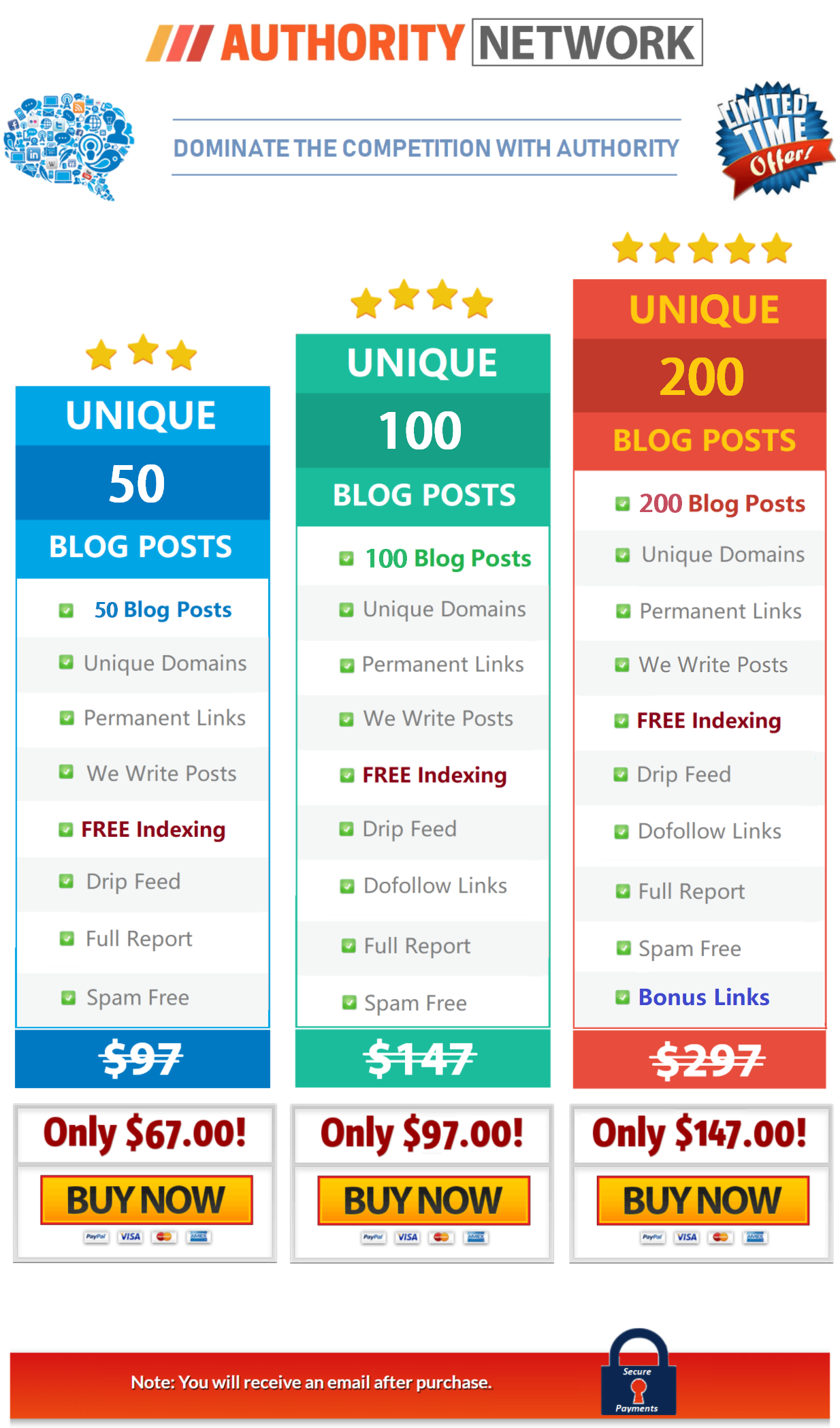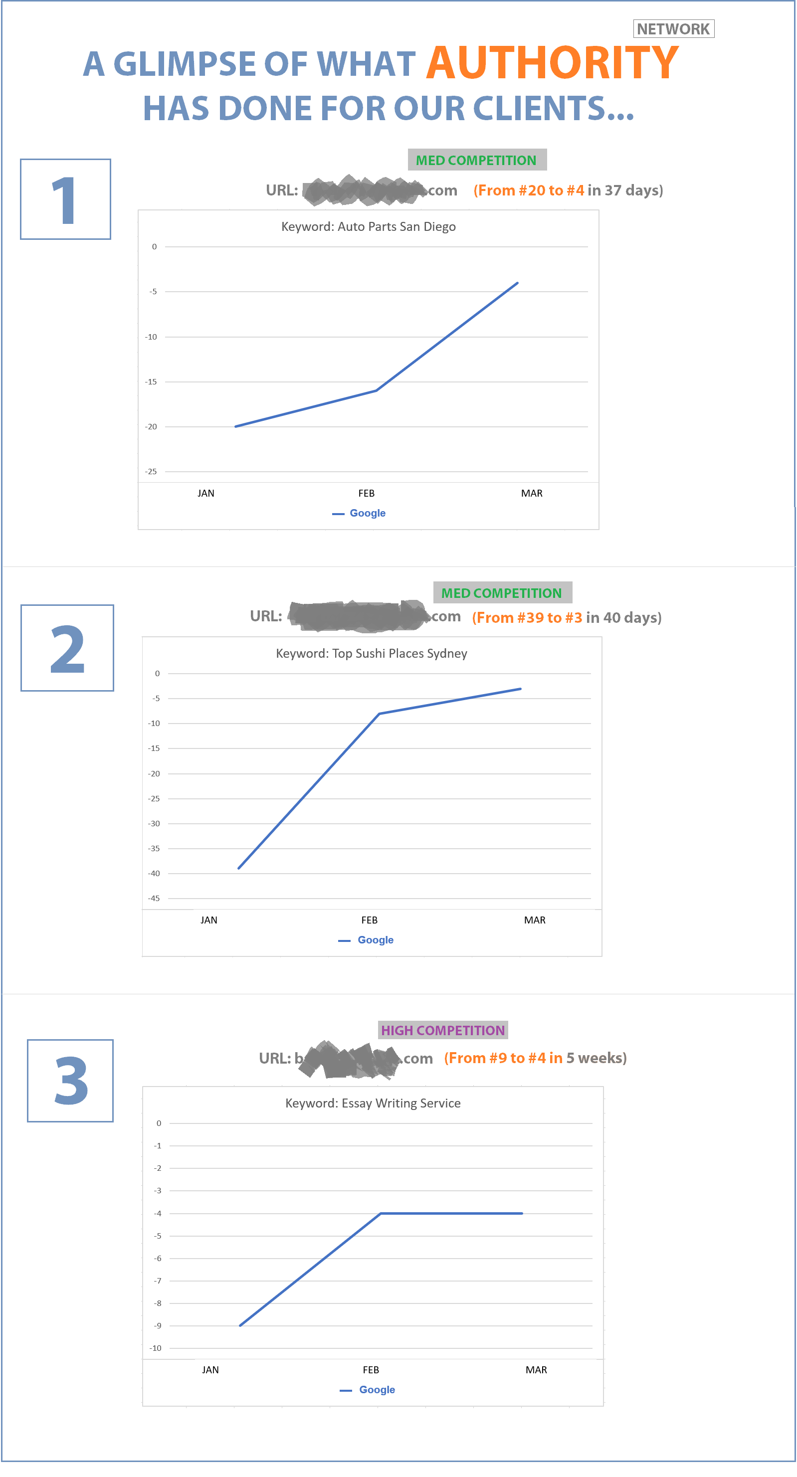 Imagine paying $$ extra and spending hours checking up on indexing services. With Authority Network DONE-FOR-YOU service, your blog posts will be indexed for instant boost in search engines. |